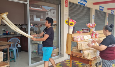 La señora Gladys Bermeo, una mujer Emprendedora que elabora y comercializa varios productos derivados de la caña de azúcar. Contacto para pedidos al número celular 0963396054. Edgar zabala, Presidente del GADRN, apoyando al fomento productivo.