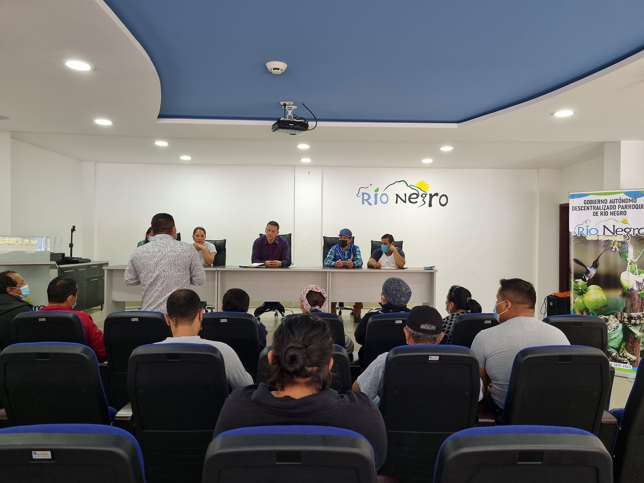 Edgar Zabala Jaramillo, Presidente del Gobierno Parroquial de Río Negro, junto a sus señores Vocales, mantienen una reunion de trabajo con varios moradores del Sector San Juan del Topo, para conocer por parte del señor Presidente las obras que se ejecutarán en beneficio del Sector. Informa.