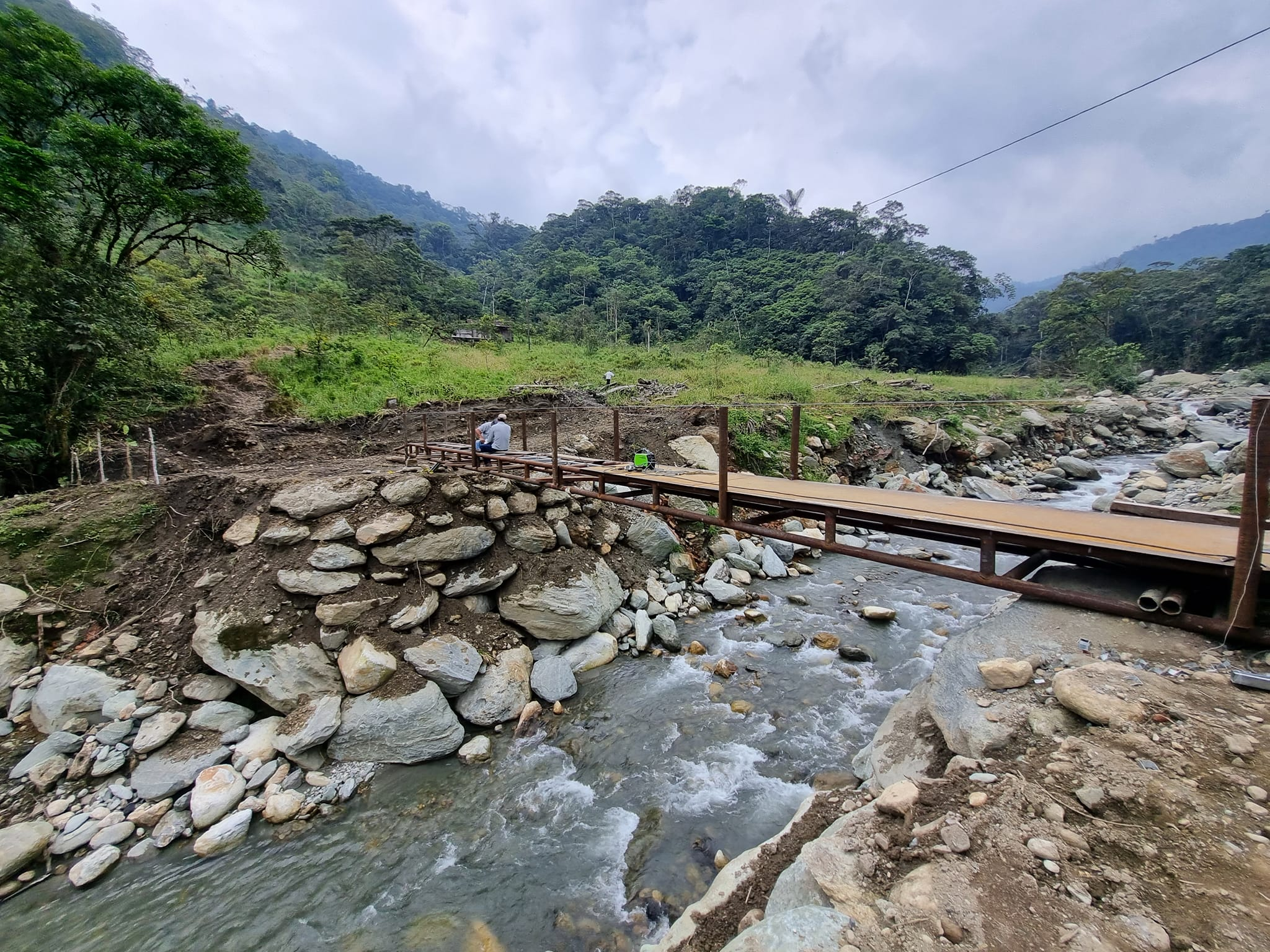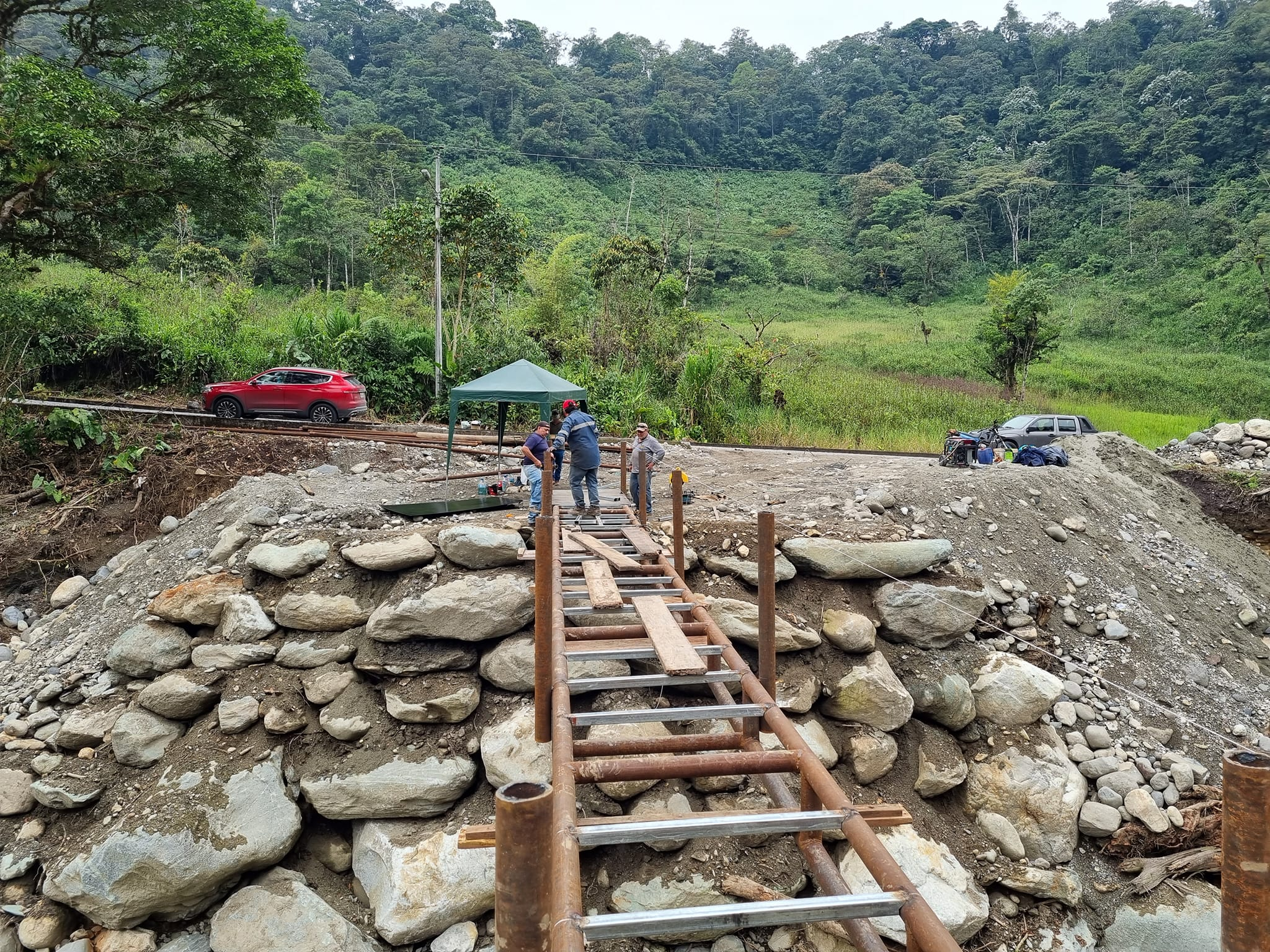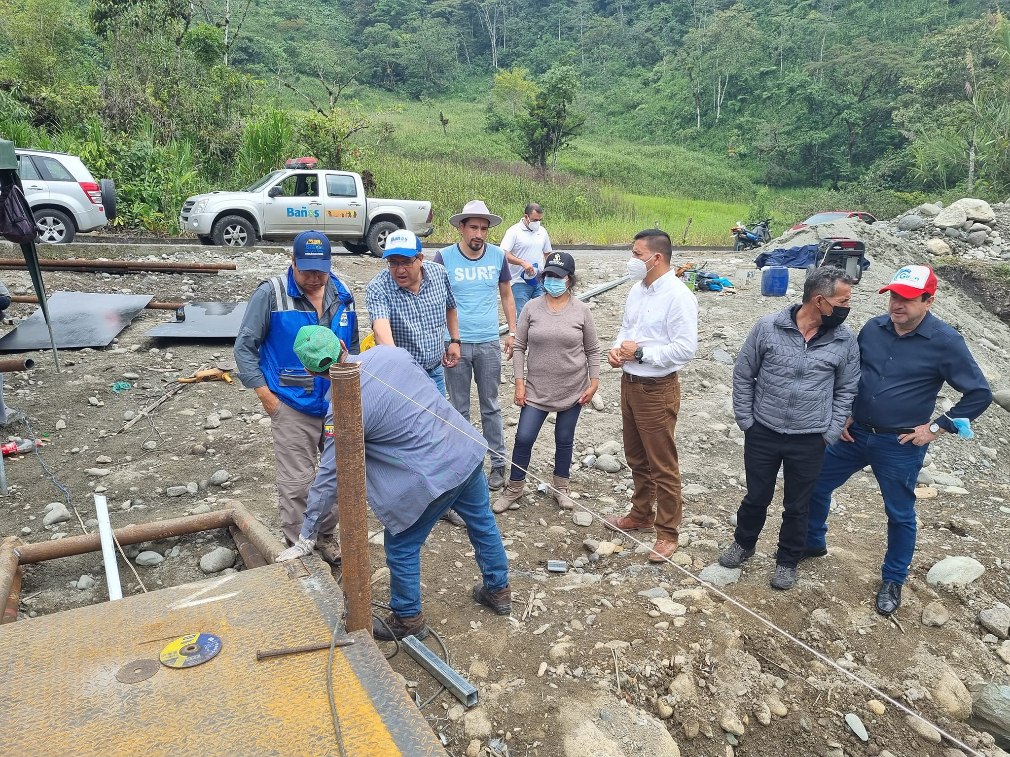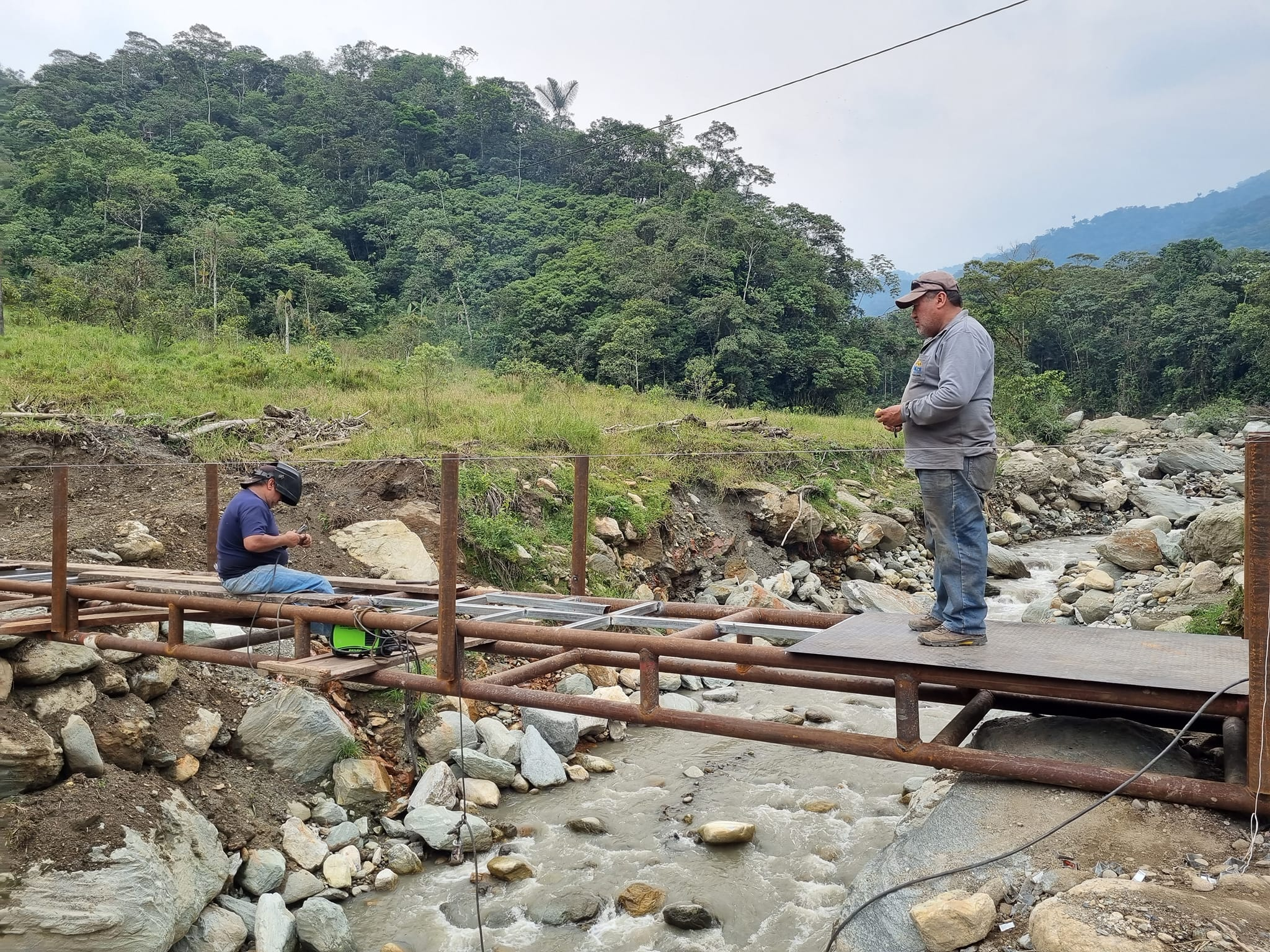 Edgar Zabala Jaramillo, Presidente del Gobierno Parroquial de Río Negro, Dr. Luis Silva Luna (Alcalde) señores (as) Consejales, Ing. Fernando Quinga (Director OOPP) recorrienron el sector de las Estancias donde se construye el puente peatonal, mismo que fue destruido por el aluvion del 5-sep-2021. Informa.