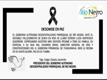 Información: expresamos nuestra mas sentida nota de pesar a los familiares de Lucia Guerrero en especial a su hijo , ingeniero Eduardo Bayas, Director de vías y contrucciones del HCPT.