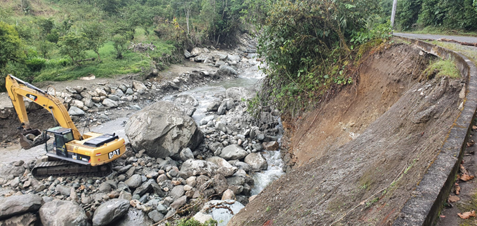 Edgar Zabala Jaramillo, Presidente del Gobierno Parroquial de Río Negro, continúa realizando trabajos de desazolve, limpieza y protección de la vía de los puestos más críticos en el Sector las Estancias. De esta manera cumplir con las recomendaciones emitidas por parte de la SNGRE, mismas que fueron provocadas por el aluvión del 5-sep-2021. Informa