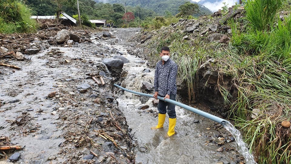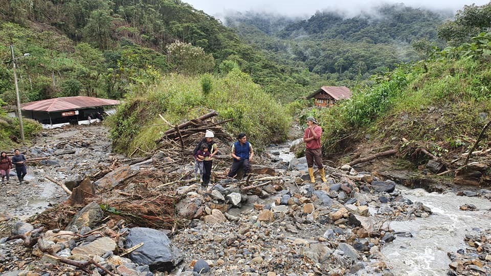 Edgar Zabala Jaramillo, Presidente del Gobierno Parroquial de Río Negro, da a conocer que Las fuentes lluvias del día jueves en la noche ocasionó grandes daños en la vía en el sector de las Estancias. Además dos viviendas fueron afectadas por el aluvión, (Aníbal Fiallos - Francisco Ocaña) como también fue afectada la tubería de conducción del agua potable de consumo humano que abastece a los moradores del sector.